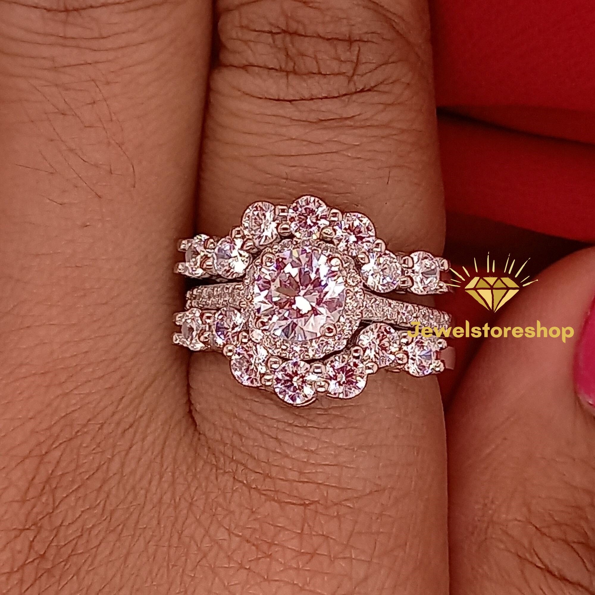 3 Piece Ring Set 3pc Wedding Set 3pc Bridal Set Maxinejewelry